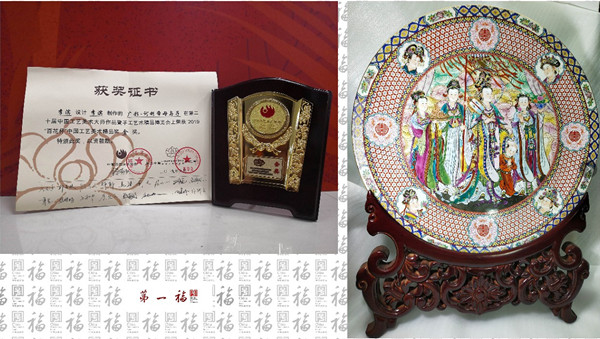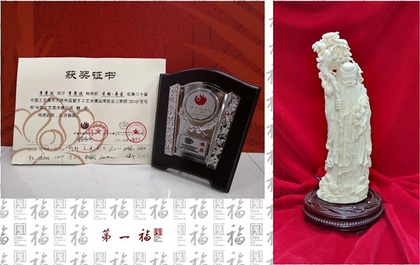 第二十屆中國工藝美術(shù)大師作品暨手工藝術(shù)精品博覽會于9月12日在武漢隆重開展,廣州市工藝美術(shù)總公司攜牙雕、廣彩等精美作品參加博覽會舉辦的“2019‘百花杯’中國工藝美術(shù)精品獎”評選活動,并榮獲金銀銅獎各一項:《訶利帝母與子》廣彩作品獲金獎,《壽星》牙雕作品獲銀獎,《42層龍鳳牙球》牙雕作品獲銅獎。