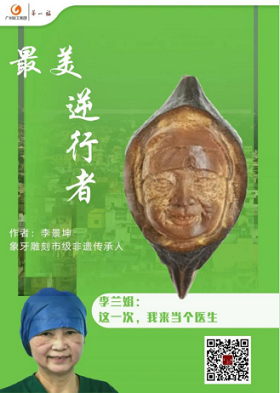 在共度時(shí)艱的關(guān)頭,穗聯(lián)公司多位非遺傳承人通過自身技能,向堅(jiān)守在抗擊疫情、復(fù)工復(fù)產(chǎn)的一線工作者致敬。如牙雕傳承人李景坤創(chuàng)作了以猛犸象牙為原材料的《人間正道》猛犸牙雕面譜,運(yùn)用淺浮雕技法將象征“賜福鎮(zhèn)宅圣君”的鐘馗像與正氣凜然的鐘南山像巧妙結(jié)合,以“現(xiàn)代鐘馗”比喻大醫(yī)精誠、奮力抗擊疫情的鐘南山院士。另一件是以圓雕技法刻畫李蘭娟院士形象的《最美逆行者》欖雕作品,作品重點(diǎn)刻畫了李院士因長時(shí)間戴口罩而形成壓痕的面部形象。