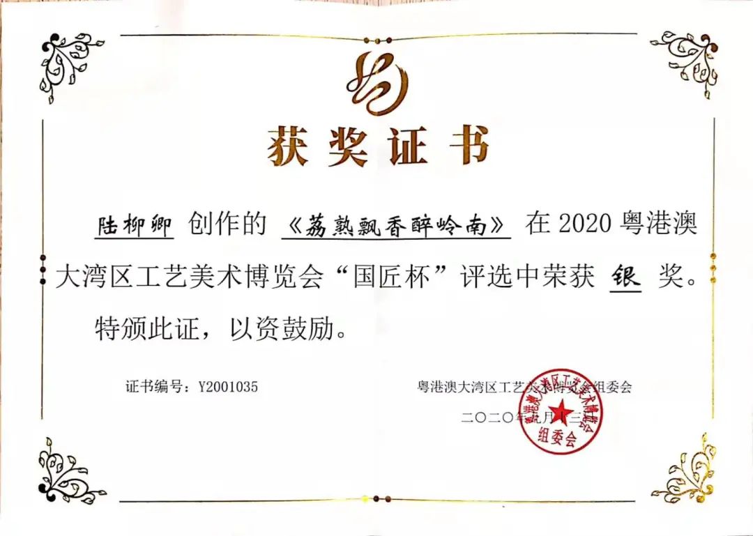 近日,2020粵港澳大灣區(qū)工藝美術(shù)展覽會“國匠杯”作品評選結(jié)果正式公布,廣州市工藝美術(shù)總公司余其澤《隨遇而安》玉雕作品、廣州市工藝美術(shù)研究所陸柳卿《荔熟飄香醉嶺南》廣繡作品獲銀獎;廣州市工藝美術(shù)研究所尹志強(qiáng)《荷塘清趣》玉雕作品獲銅獎。此次獲獎,是主辦方和參展觀眾對工美總公司、工美研究所在工藝美術(shù)領(lǐng)域的高度認(rèn)可。 穗聯(lián)公司 陸嘉穎