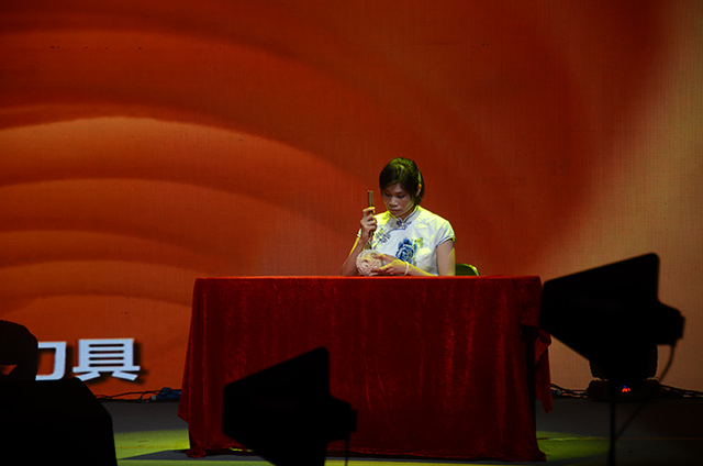 展示會上,仇玉英大師代表女技師創(chuàng)新工作室上臺進(jìn)行鏤雕牙雕技術(shù)的展示,看著她手持象牙球從容地用雕刻刀在牙球最外一層雕刻花紋,鑿工把里層逐層鑿成精細(xì)的各種圖案,精致的圖案栩栩如生地般“跳出來”,不禁令人驚嘆她精湛的技藝。