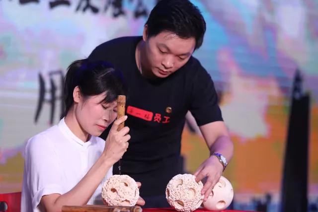 比賽場上,牙雕大師仇玉英、手工打金大師周鏡釗以及兩名第一福工作人員的傾情演出,讓現(xiàn)場觀眾能近距離地接觸到傳統(tǒng)工藝的制作過程,感受寶貴的工匠精神。