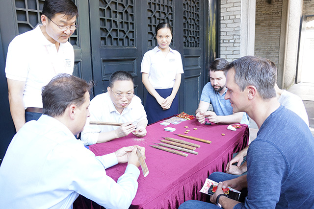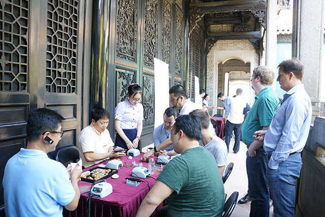 9月15日上午,“世界航線發(fā)展大會(huì)”的貴賓一行數(shù)十人來(lái)到廣東民間工藝博物館(陳家祠),參觀并體驗(yàn)了以象牙果雕刻、廣州欖雕等為代表的“第一?!眰鹘y(tǒng)民間工藝活動(dòng)?!暗谝桓!惫に嚸佬g(shù)大師李景坤、工藝美術(shù)技師楊建國(guó)現(xiàn)場(chǎng)演示了傳統(tǒng)手工技藝。